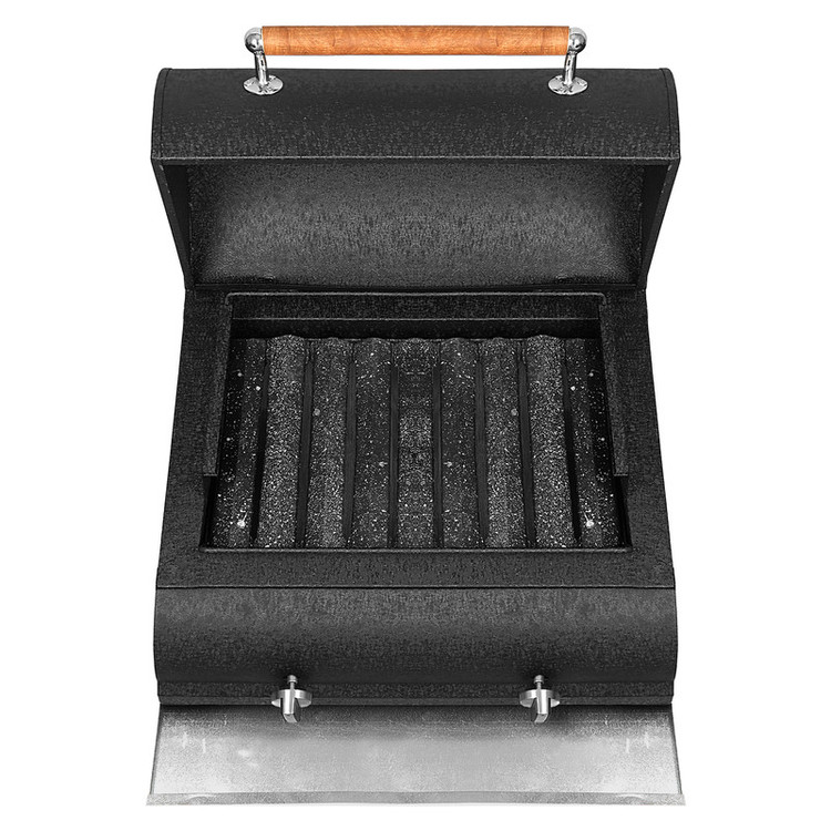 برای استفاده از قسمت باربیکیو گازی می بایست باکس زغالی برداشته و کنار گذاشته شود.