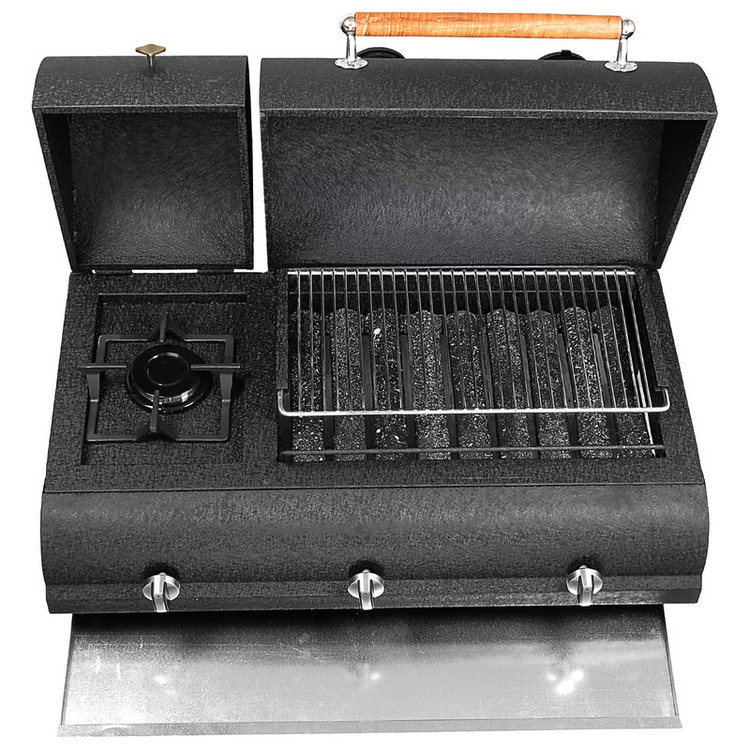برای استفاده از قسمت باربیکیو گازی می بایست باکس زغالی برداشته و کنار گذاشته شود.