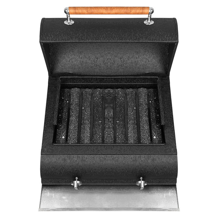 برای استفاده از قسمت باربیکیو گازی می بایست باکس زغالی برداشته و کنار گذاشته شود.